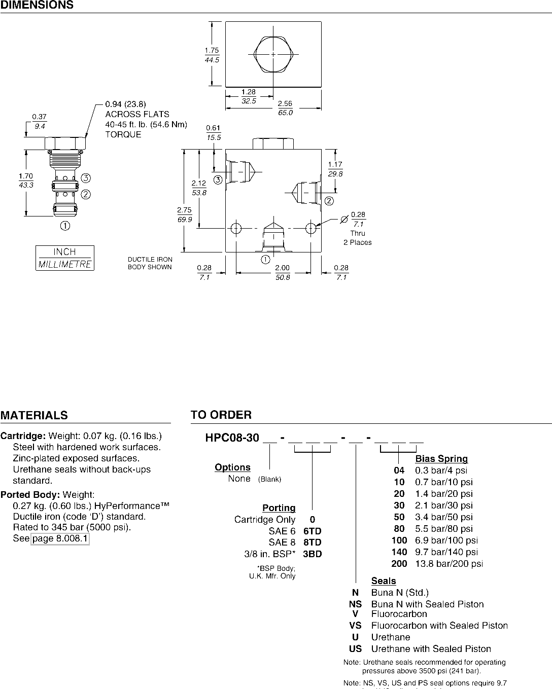 Seal Kit: SK08-3X-TM for Buna N seals; SK08-3V-TM for viton seals; SK08-3U-00 for urethane seals; see page 8.650.1