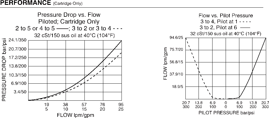 Maximum Operating Pressure: Ports 2, 3, 4: 350 bar (5075 psi) 10% cycle life: 420 bar (6090 psi); Ports 1 and 6 (pilot): 35 bar (500 psi); Port 5 (tank): 69 bar (1000 psi)