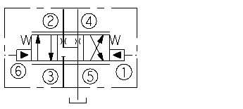 When the HPE16-S67H is in neutral position port 3 is blocked and ports 2, 4, and 5 are in communication with each other. When the remote pilot signal at 1 exceeds the force of the bias spring, the spool shifts proportionally to the applied pilot pressure to allow flow from 3 to 4, through a load such as a hydraulic cylinder or motor, and from 2 to 5 and to tank. Port 5 is to be used as tank port only with maximum pressure of 69 bar (1000 psi). On remote pilot signal at 6, the spool shifts proportionally to the applied pressure in the opposite direction, thus reversing the flow direction.