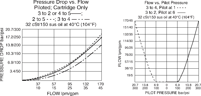 Maximum Operating Pressure: Ports 2, 3, 4 (work): 350 bar (5075 psi);Ports 2, 3, 4 at 10% cycle life: 420 bar (6090 psi);Ports 1 and 6 (pilot): 35 bar (500 psi); Port 5 (tank): 69 bar (1000 psi)