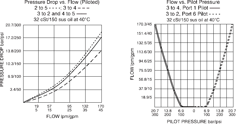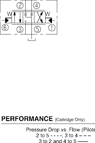 Maximum Operating Pressure: Ports 2, 3, 4 (work): 350 bar (5075 psi) (10% life cycle) 420 bar (6090 psi); Ports 1 and 6 (pilot): 35 bar (500 psi); Port 5 (tank): 69 bar (1000 psi)