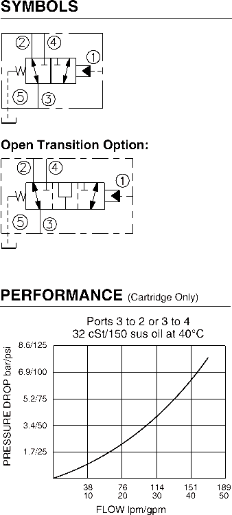 Internal Leakage at 207 bar (3000 psi): 245 ml/minute (15 cu. in./minute);Zero leakage from port 1 to port 2 with sealed spool.