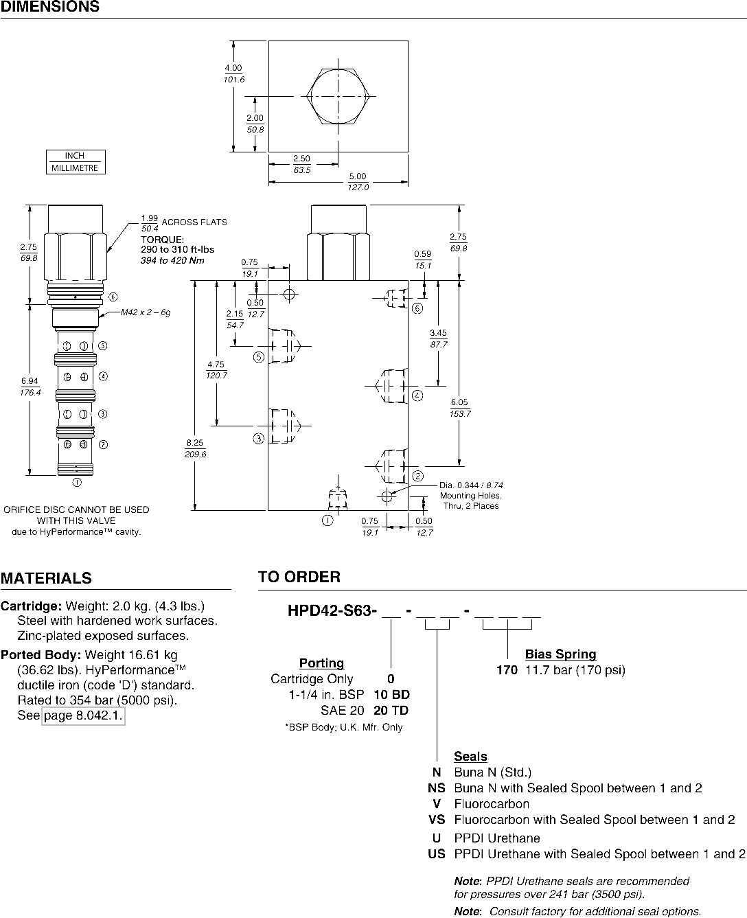 Seal Kit: HSK42-S6X-BMMMM (Buna N), HSK42-S6V-BMMMM (Viton), HSK42-S6U-0000 (Urethane); See page 8.650.1