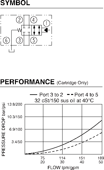 Maximum Internal Leakage: at 350 bar (5075 psi) with 32 cSt oil: Ports 3 to 4: 740 ml/minute (45 cu. in./minute) Ports 3 to 2: 370 ml/minute (23 cu. in./minute)