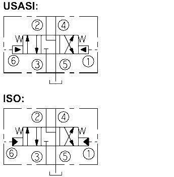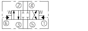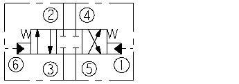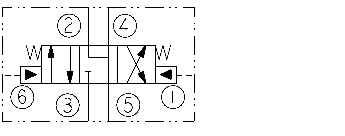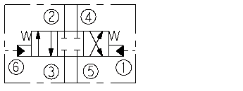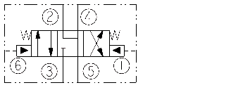 When the HPD16-S67D is in neutral position, port 3 is blocked and flow is allowed between ports 2, 4 and 5. When the remote pilot signal at 1 exceeds the force of the bias spring, the spool shifts to allow flow between 3 and 4, and between 2 and 5. When remote pilot signal at 6 exceeds the force of the bias spring, the spool shifts to allow flow from 3 to 2 and from 4 to 5.
