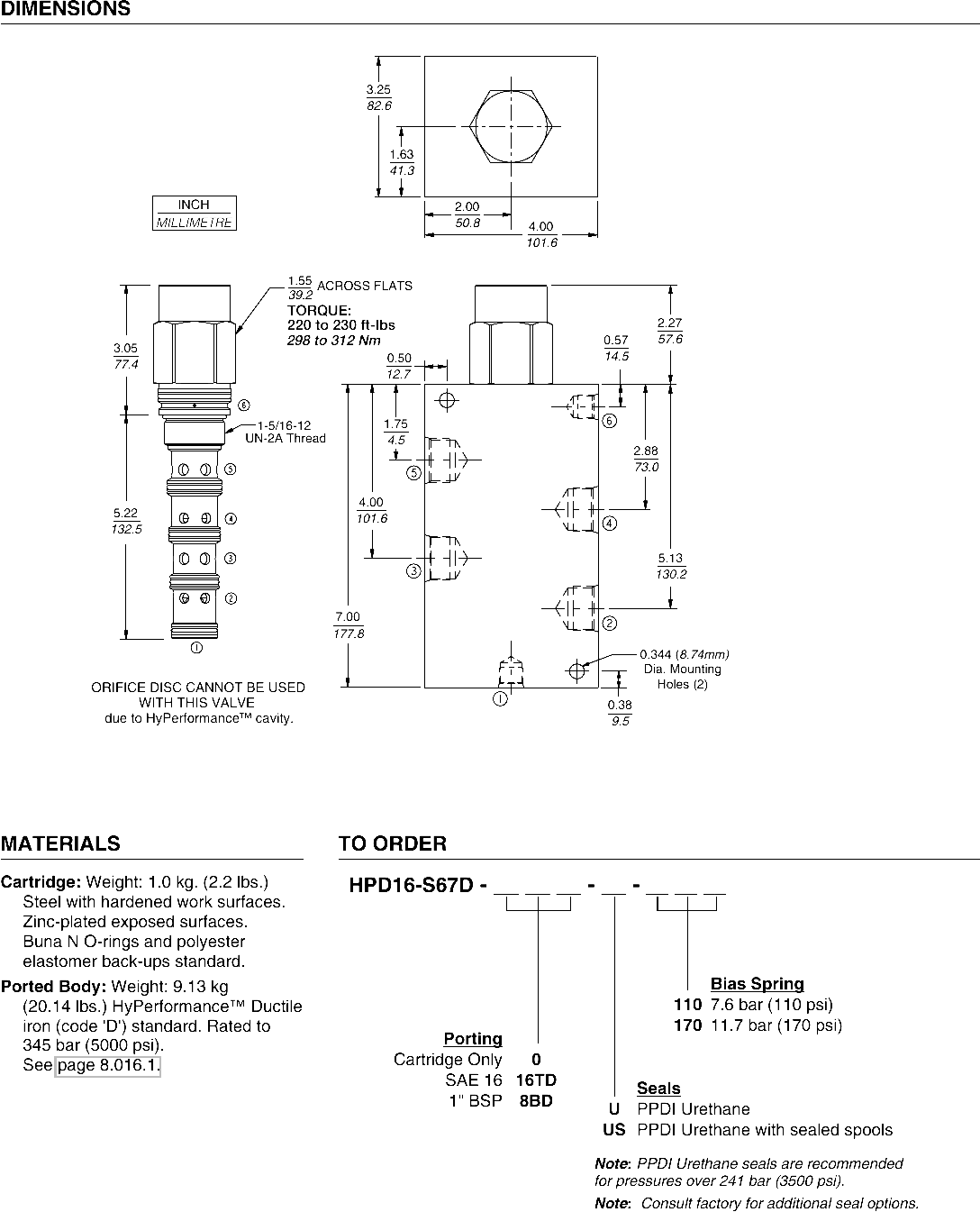 Installation: No restrictions; See page 9.020.1Note: Adaptor lock kit HF P/N 4207660 (sold separately) may be required when pilot pressure exceeds 35 bar (500 psi).