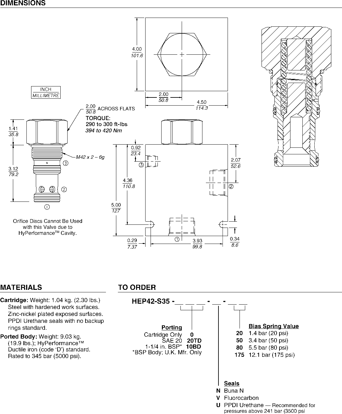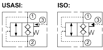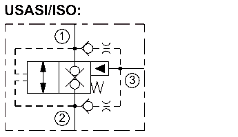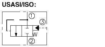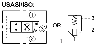 The HEP42-S35 is a spring-biased blocking valve which will shift to allow full flow from 1 to 2 only when pressure at 1 exceeds the cumulative pressure of 3, plus the bias spring pressure value.