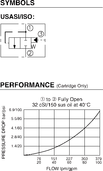 HYDRAFORCE.com®6.9/1005.5/8076201514022760FLOW lpm/gpmPRESSURE DROP bar/psi30380379100➀ to ➁ Fully Open32 cSt/150 sus oil at 40°C2.8/404.1/601.4/20
