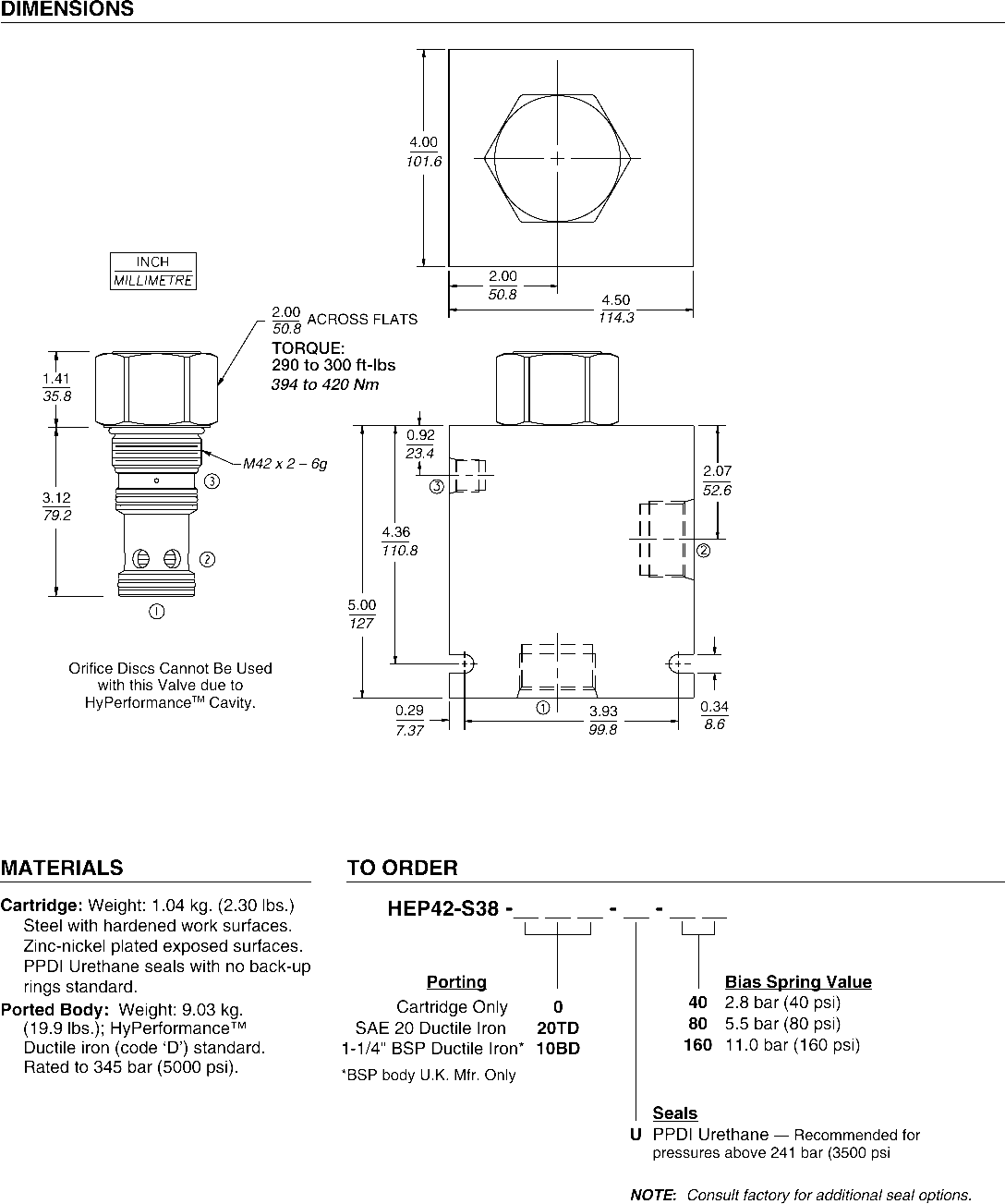 Seal Kit: SK42-S3U-OO with Urethane seals; See page 8.650.1