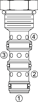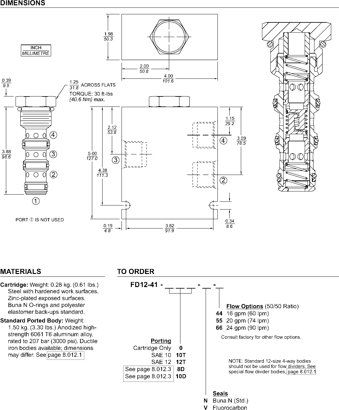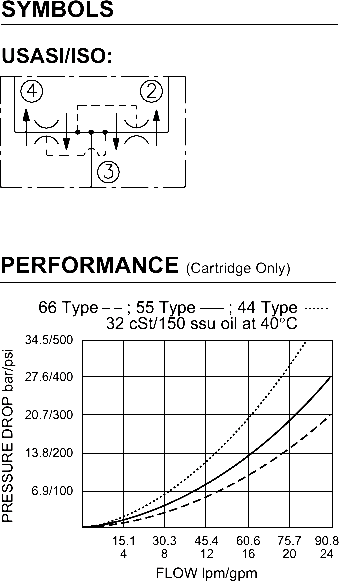 The cartridge will combine input flows from ports ➁ and ➃The FD12-41 is designed to allow flow to the opposite cylinder once the fi rst cylinder