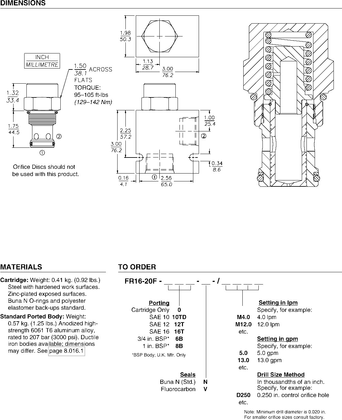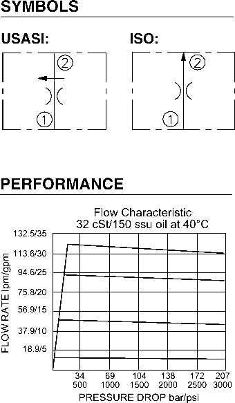 The FR16-20F maintains a constant flow rate out of ➁ regardless of load pressure changes in the circuit downstream of ➁The fi xed control orifice is factory preset to customer flow specifi cation. The valve
