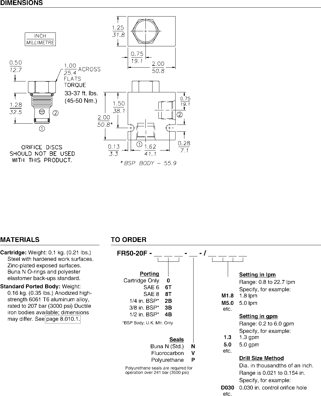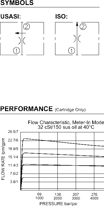 The FR50-20F maintains a constant flow rate from ➀ to ➁ regardless of load pressure changes in the circuit downstream of ➁The fi xed control orifice is factory preset to customer flow specifi cation. The valve