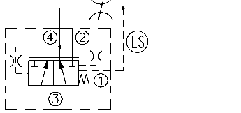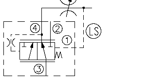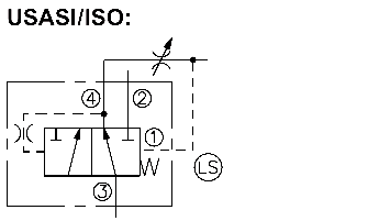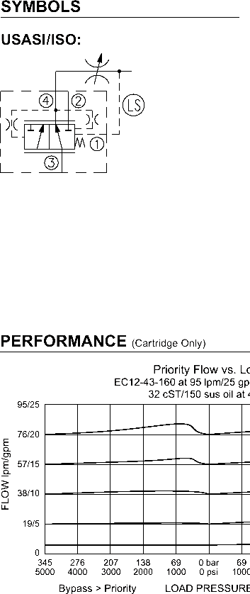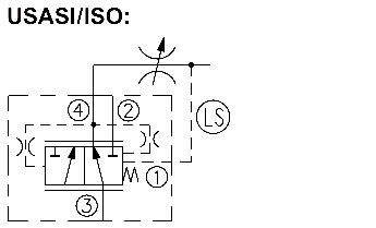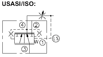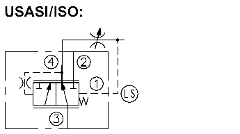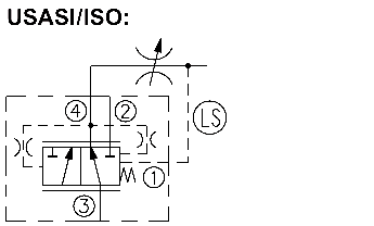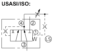 exits, or is bypassed, at port ➁. Port ➀ is the load sense port. All ports may be fully pressurized.