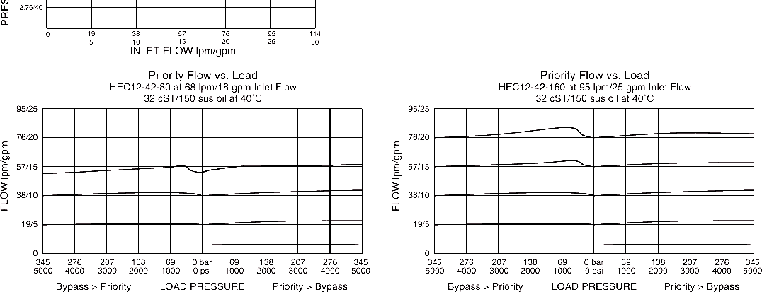 Maximum Inlet Flow Rate: 95 lpm (25 gpm) with 11 bar (160 psi) compensating spring; 68 lpm (18 gpm) with 5.5 bar (80 psi) compensating spring