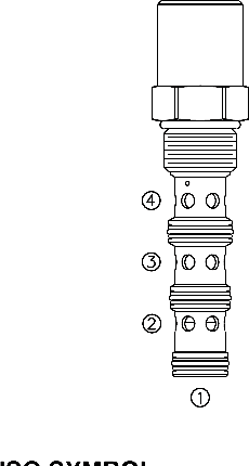With inlet flow at port 3, the HEC12-42 will deliver required priority flow at port 4, based on the size of the external orifice, regardless of load pressure. Excess flow exits, or is bypassed, at port 2. Port 1 is the load sense port. All ports may be fully pressurized.