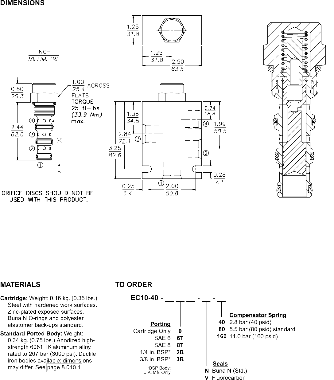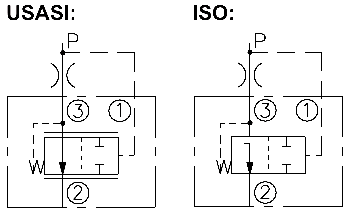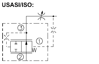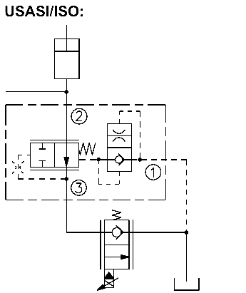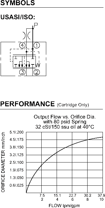 port ➂ (see USASI Symbol), thereby regulating the hydraulic flow rate between the two points in the circuit. The EC10-40 is a priority type regulator, delivering pump