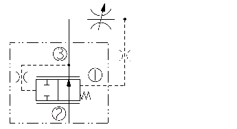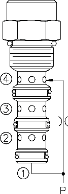 The EC10-40 maintains a constant flow rate from ➂ regardless of load pressure changes in the circuit downstream of ➂The cartridge maintains a constant differential pressure from circuit point P to