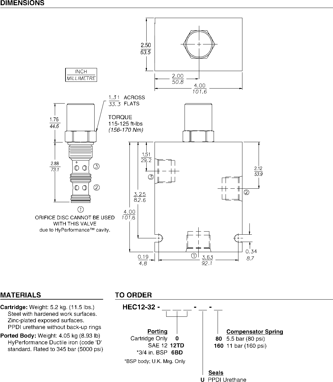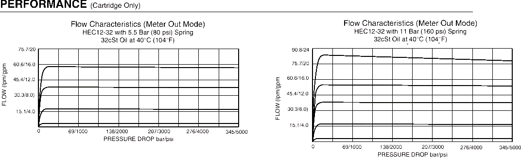 With inlet flow at port 2, the HEC12-32 will deliver required flow at port 3, regardless of load pressure sensed at port 1. NOTE: For greater stability, it is recommended to install the 10.53 mm (0.21 inch) orifice in the load sense line at port 1.