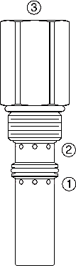 • High Pressure steel adapter on inlet port ➂ withstands up to 345 bar (5000 psi).